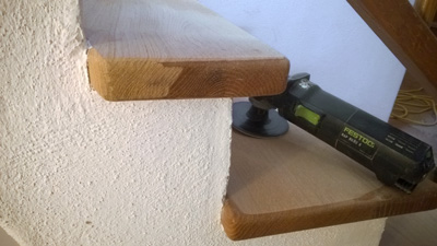 Wir reparieren und erneuern stumpfe und abgetretene Stufen und Holztreppen. Wir führen Kleinreparaturen und Detailarbeiten an Ihren Stufen und Geländern aus. Selbstverständlich professionell mit modernsten Maschinen und handwerklichem Können. Schleifarbeiten können Dank modernster Technik nahezu staubfrei ausgeführt werden – auch in möblierten Räumen.